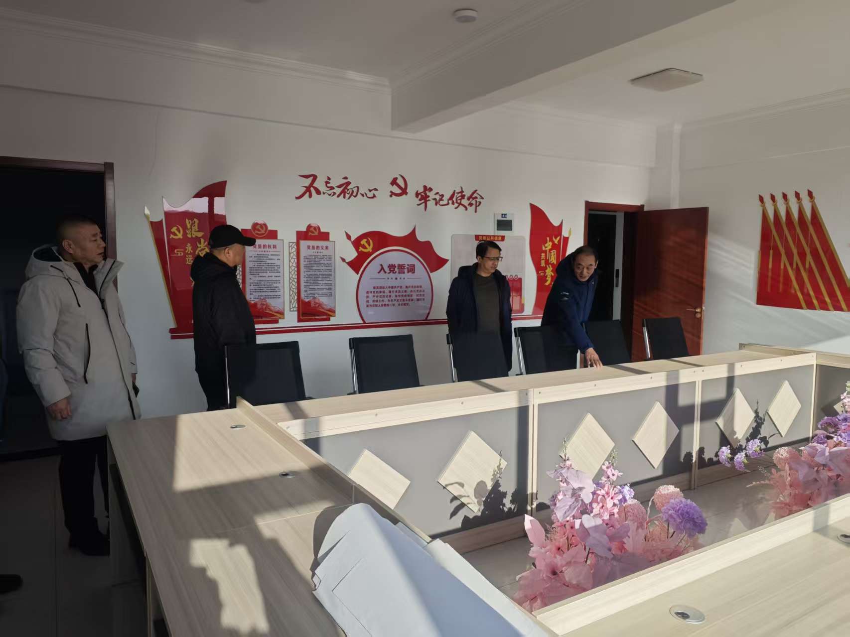從場區(qū)辦公樓門拾階而上,在四樓公司租賃的嶄新的辦公室內(nèi),公司負責人周建勇詳細向高董匯報了進入四季度以來公司的經(jīng)營情況、存在問題及搬遷完成情況。高董指出,鋼材市場作為集團完成銷售指標任務的中流砥柱,在年終歲尾要抓住上下游企業(yè)銷售掛賬的高峰,服務好新舊整合的經(jīng)銷商戶,全力沖刺任務目標。高董強調(diào),借這次喬遷新址契機,要全面啟動辰豐公司銷售業(yè)務,同時嚴格把控業(yè)務流程,確保新公司規(guī)范運行。針對鋼材市場公司和辰豐公司合署辦公人員短缺的狀況,吳總要求現(xiàn)有財務人員積極發(fā)揮“傳、邦、帶”作用,在人員未到位前實行“一人多崗”,確保業(yè)務工作無縫銜接。針對新的工作地點離市區(qū)較遠,吳總強調(diào)市場要進一步做好職工上下班交通出行安全工作,對司乘人員要“每日三醒”。