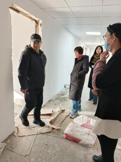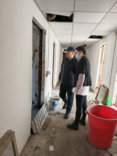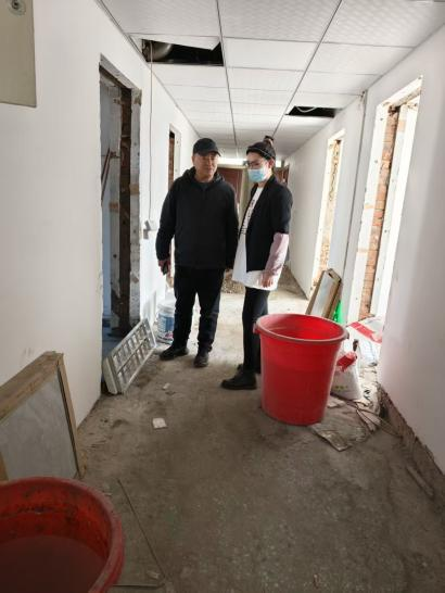 在六樓施工現(xiàn)場,吳總實地查看了改造區(qū)域的施工進度及安全管控情況,詳細聽取了畢佩鑫副經(jīng)理關(guān)于裝修總體推進及下一步計劃的匯報。