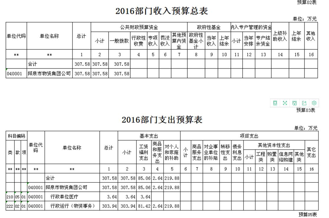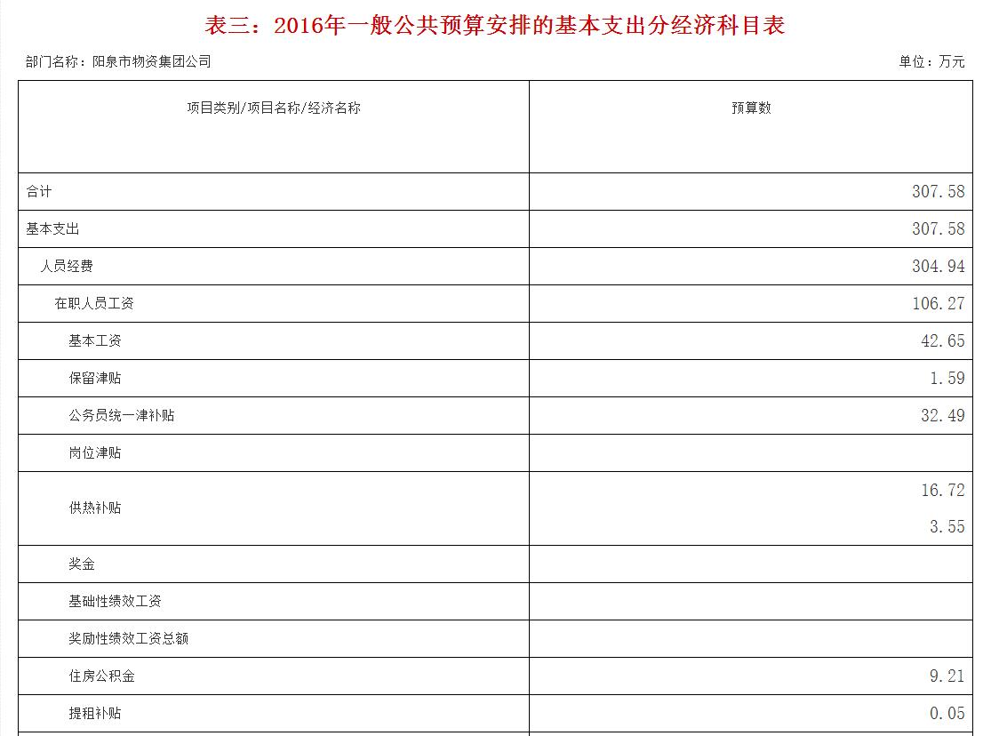 陽泉市物資集團(tuán)公司2016年預(yù)算公開