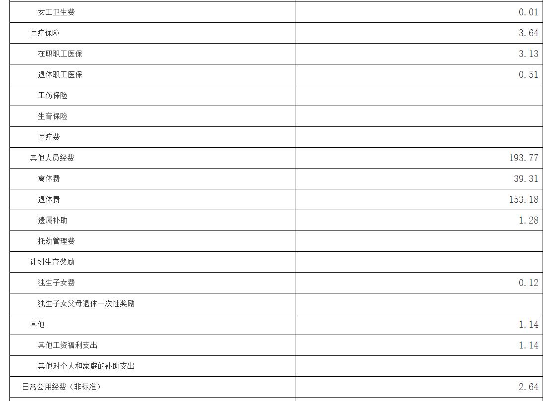 財政只撥付本單位在職、離退休人員的工資性費(fèi)用,不撥付單位公用經(jīng)費(fèi),因此未安排“三公”經(jīng)費(fèi)支出。