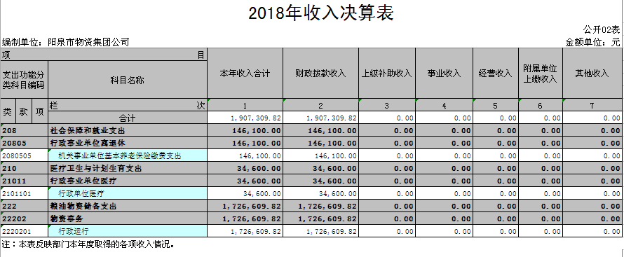 二、關(guān)于陽泉市物資集團(tuán)公司2018年度收入決算情況說明