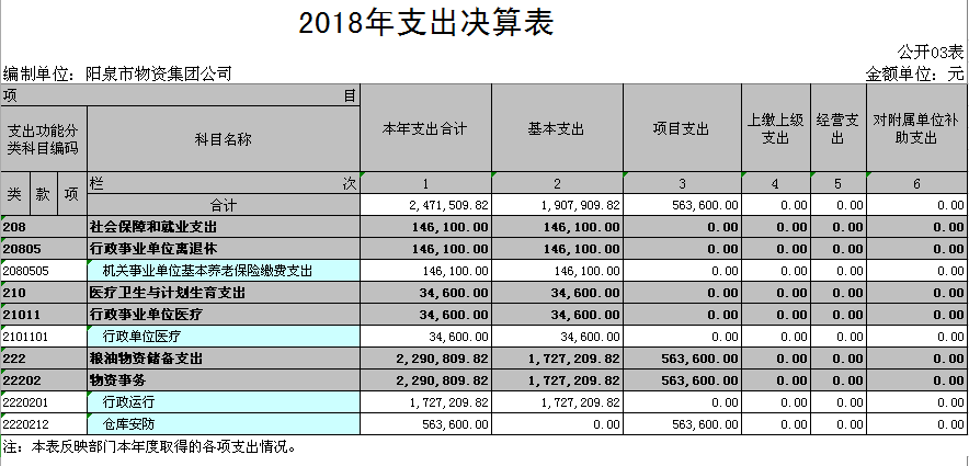 2018年部門單位決算信息公開