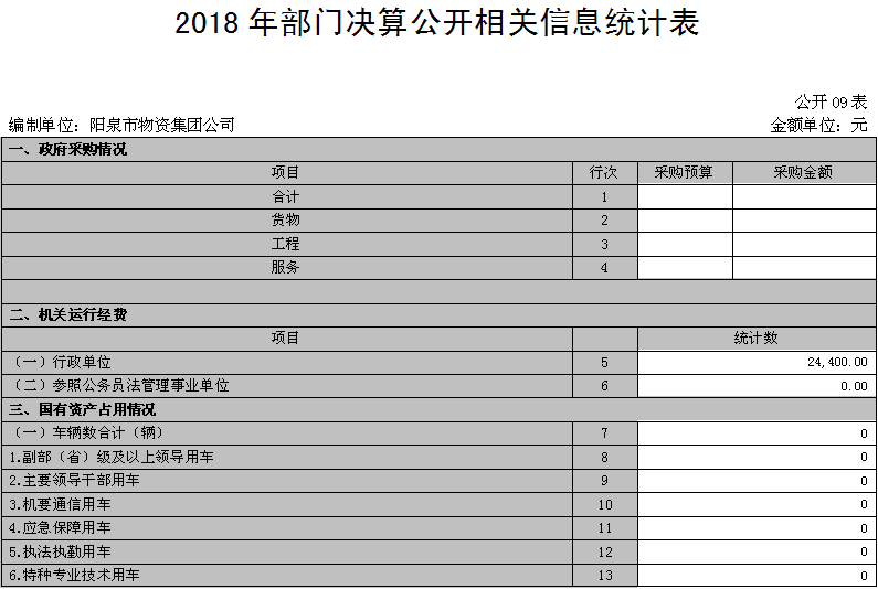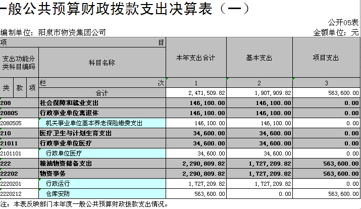 決算部門:陽泉市物資集團(tuán)公司
