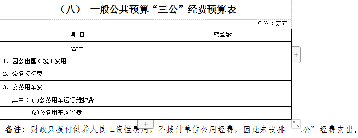 3.“三公”經(jīng)費:市直部門用一般公共預算安排的因公出國(境)費、公務用車購置及運行費和公務接待費。其中,因公出國(境)費反映單位公務出國(境)的國際旅費、國外城市間交通費、住宿費、伙食費、培訓費、公雜費等支出;公務用車購置費反映公務用車車輛購置支出;公務用車運行維護費反映單位按規(guī)定保留的公務用車燃料費、維修費、過路過橋費、保險費、安全獎勵費用等支出;公務接待費反映單位按規(guī)定開支的各類公務接待支出。