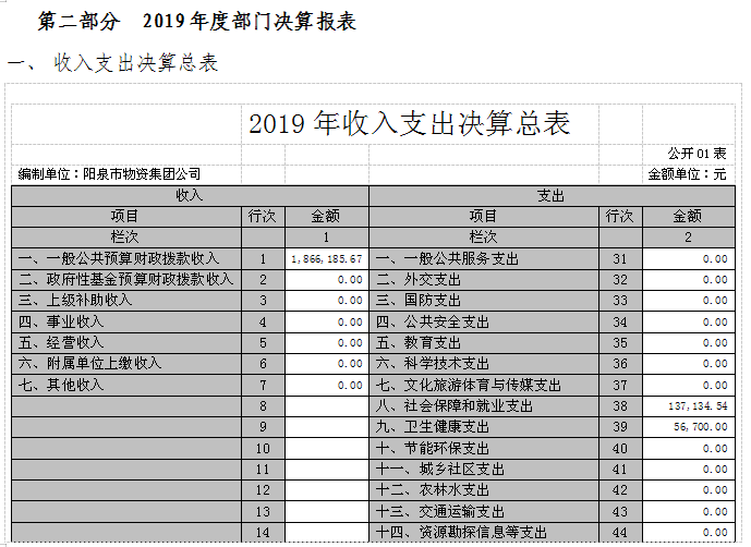 一、關(guān)于陽泉市物資集團(tuán)公司 2019年度收入支出決算總體情況說明