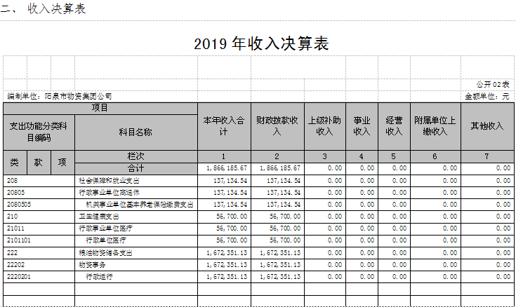決算部門:陽泉市物資集團(tuán)公司
