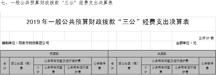 七、關(guān)于陽泉市物資集團(tuán)公司2019年度一般公共預(yù)算財(cái)政撥款“三公”經(jīng)費(fèi)支出決算情況說明