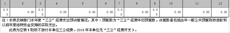本單位2019年度、2018年度“三公”經(jīng)費(fèi)財(cái)政撥款支出預(yù)算、決算數(shù)均為0。無因公出國(境)費(fèi)支出、公務(wù)用車購置及運(yùn)行費(fèi)支出和公務(wù)接待費(fèi)支出。財(cái)政不撥付此項(xiàng)支出。