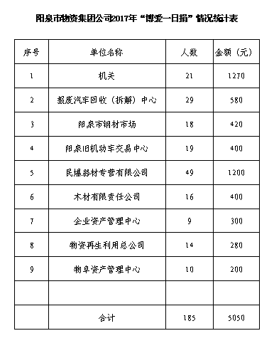 陽(yáng)泉市物資集團(tuán)公司2017年“博愛(ài)一日捐”情況匯總