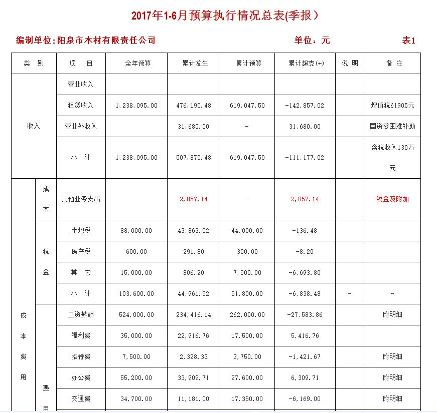 木材公司2017年上半年預(yù)算執(zhí)行情況說明