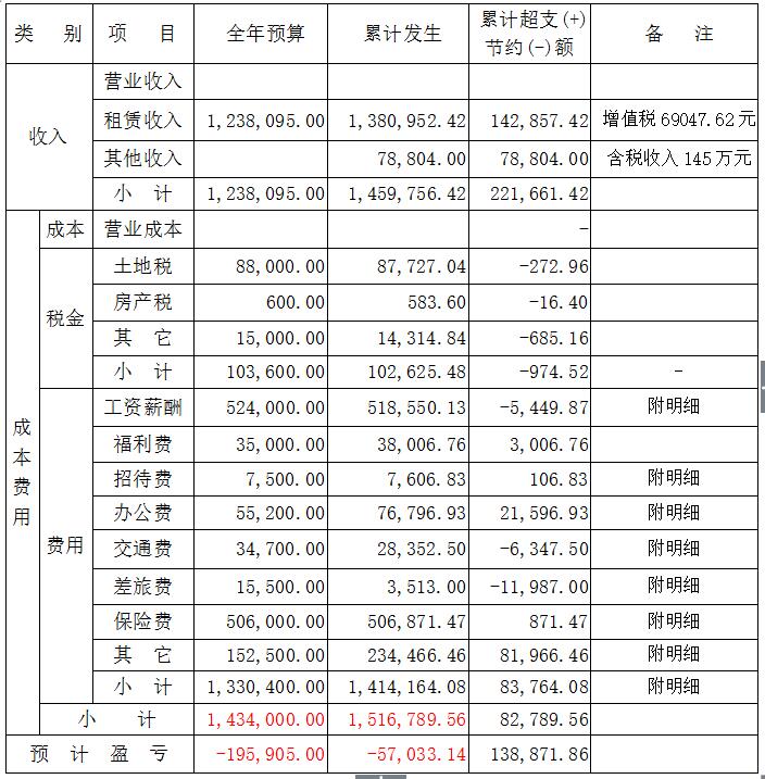 2.費(fèi)用情況:木材公司按照集團(tuán)公司下達(dá)的費(fèi)用指標(biāo),費(fèi)用支出合理,保證費(fèi)用控制在預(yù)算范圍內(nèi)。