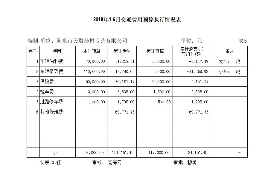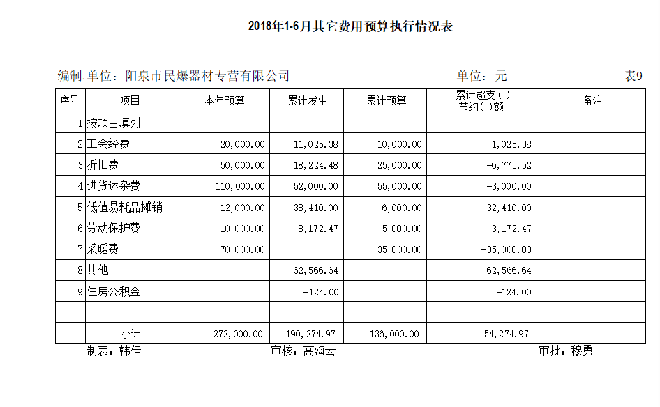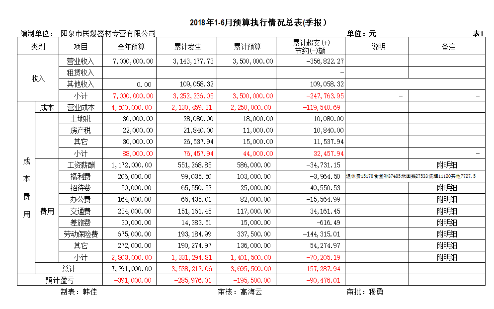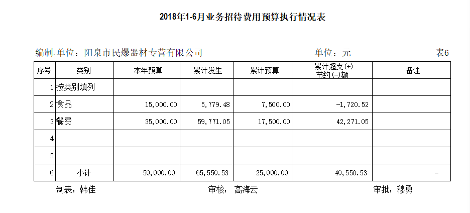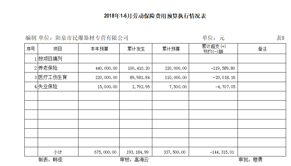 陽泉市民爆器材專營有限公司2018年上半年信息公開資料