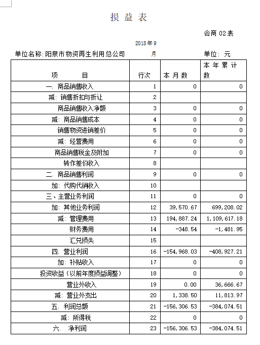 截止9月30日,再生公司實現(xiàn)租賃收入70萬元,其它收入4萬元;完成年度預(yù)算72.8萬元的102 %;利潤-38.4萬元,完成年利潤-60萬元任務(wù)的64%;發(fā)生費用112.4萬元,完成預(yù)算137.7萬元的82%;在崗人員工資按2017年陽泉最低標準按時發(fā)放,“40、50”人員、內(nèi)退人員工資也按月發(fā)放;累計為6名達退休年齡職工一次性補繳社保費用辦理了正常退休手續(xù) 。