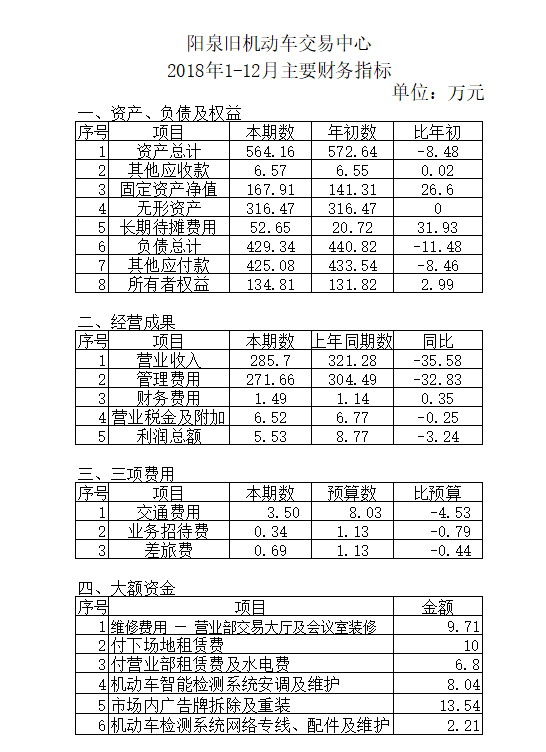 陽泉舊機(jī)動車交易中心2018年信息公開