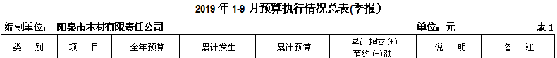 陽泉市木材有限責任公司2019年三季度信息公開