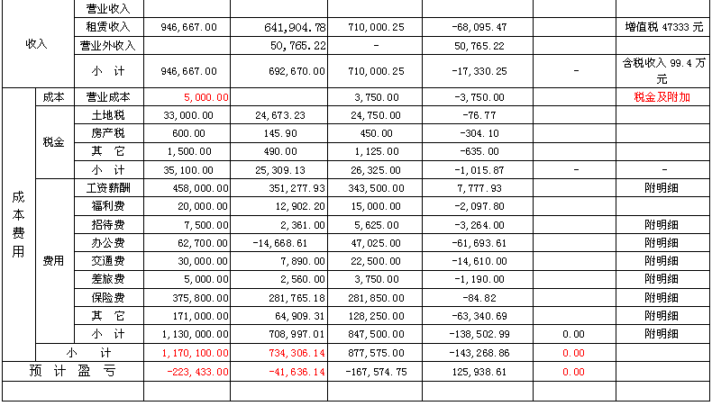 截止9月30日,木材有限責任公司實現(xiàn)租賃收入64.2萬元,完成全年預算的68%,比去年同期82.4萬元減少了18.2萬元,發(fā)生費用總額73.4萬元,完成全年預算的62.7%,比去年同期77.4萬元減少4萬元;利潤-4萬元,完成全年預算-22萬元的18%,比去年同期9萬元增虧13萬元.1-9月在崗人員按協(xié)商工資足額發(fā)放,“40、50”人員、內退人員工資也按月發(fā)放。為8名達退休年齡職工辦理了退休手續(xù) 。