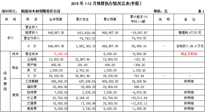 截止12月31日,木材有限責任公司實現(xiàn)租賃收入92.7萬元,完成全年預算的98%,比去年同期92.3萬元增加了0.4萬元,發(fā)生費用總額108.7萬元,完成全年預算的93%,比去年同期118.3萬元減少9.6萬元;利潤-8.4萬元,完成全年預算-22萬元的38%,比去年同期-19.9萬元減虧11.5萬元。在崗人員按協(xié)商工資足額發(fā)放,“40、50”人員、內(nèi)退人員工資也按月發(fā)放。全部職工醫(yī)療保險金、失業(yè)保險金都如期上繳,為8名達退休年齡職工辦理了退休手續(xù)。