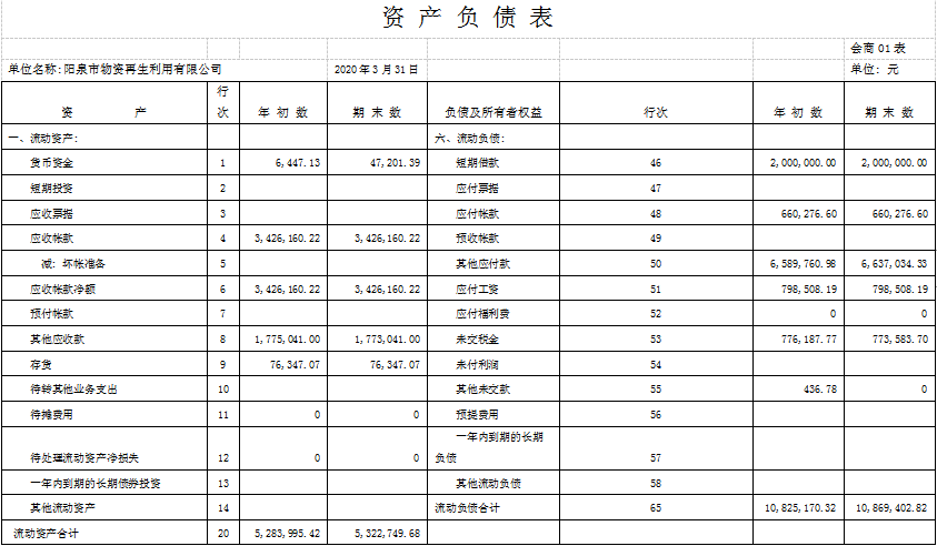 再生公司2020年一季度信息公開