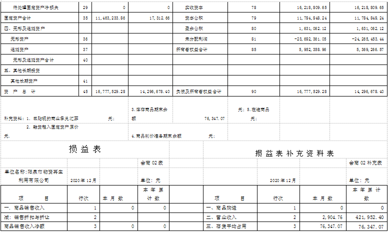 2020年物資再生公司全體員工緊緊圍繞集團公司年初布置的各項任務指標,凝心聚力、艱苦奮斗,截止12月30日租賃收入42.2萬元、其它收入117.1萬元;實現(xiàn)利潤-58.3萬元,比年初預算(任務)的-68萬元減虧9.7萬元;發(fā)生各項費用217.6萬元。在崗人員工資按陽泉市現(xiàn)行最低標準按時發(fā)放;“40、50”人員、內退人員工資也按月發(fā)放,全體職工醫(yī)療保險、失業(yè)保險均足額上繳;為2名到齡職工辦理了正常退休手續(xù)。