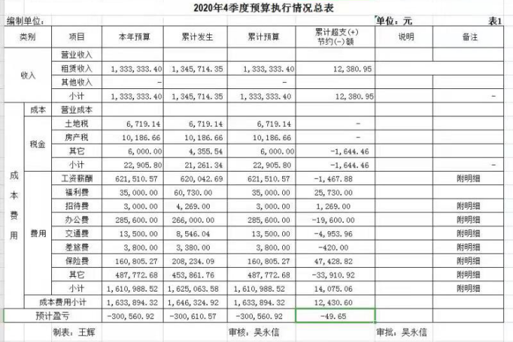 2.2020年1-12月份收入134.57萬元;市場租賃費收入134.57萬元。2020年營業(yè)收入目標(biāo)133萬元,完成率100%。