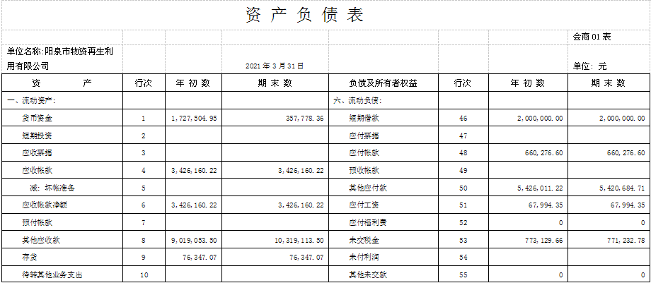 再生公司2021年一季度信息公開