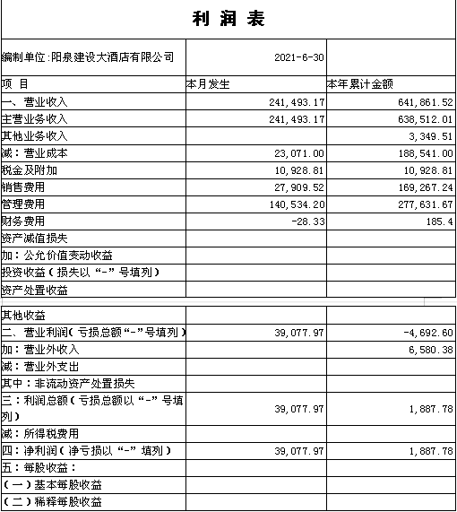 截止6月30日,酒店?duì)I業(yè)收入64.2萬(wàn)元,營(yíng)業(yè)成本18.8萬(wàn)元,銷(xiāo)售費(fèi)用16.9萬(wàn)元,管理費(fèi)用27.8萬(wàn)元,稅金及附加1.1萬(wàn)元,營(yíng)業(yè)利潤(rùn)-0.4萬(wàn)元。職工工資除3月份暫時(shí)按80%發(fā)放外,其余均正常發(fā)放。