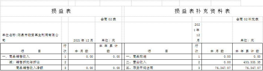 截止12月31日,再生公司實現收入186.5萬元,其中租賃收入43.33萬元,比集團公司下達的任務42萬元增加1.33萬元,完成103%;發(fā)生各項費用209.33萬元,虧損22.83萬元,比集團公司要求的任務指標:虧損45萬元減虧22.17萬元。在崗人員工資按陽泉最低標準按時發(fā)放,“40、50”人員、內退人員以及不在崗人員工資、生活費也逐月發(fā)放;為全體職工補繳了2021年6——12月的養(yǎng)老保險金,醫(yī)療、失業(yè)、工傷保險均如期上繳,完成率100%;為1名到齡職工辦理了正常退休手續(xù)。