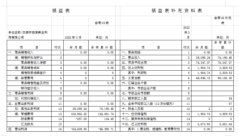 截止3月31日,再生公司完成收入8萬(wàn)元(含稅),與去年同期基本持平;發(fā)生各項(xiàng)費(fèi)用16.28萬(wàn)元,比去年同期的14.8萬(wàn)元增加1.48萬(wàn)元;虧損7.88萬(wàn)元,比去年虧損6.24萬(wàn)元,增加1.64萬(wàn)元。截止3月底在冊(cè)職工56名,在崗8名。在崗人員工資按陽(yáng)泉現(xiàn)行最低標(biāo)準(zhǔn)按時(shí)發(fā)放,“40、50”人員、內(nèi)退人員工資也按月發(fā)放,不在崗人員生活費(fèi)也逐月發(fā)放。為全體職工繳納1——3月醫(yī)療保險(xiǎn)2.09萬(wàn)元、工傷保險(xiǎn)0.41萬(wàn)元,繳納全體職工失業(yè)保險(xiǎn)1、2月份0.34萬(wàn)元,合計(jì)2.84萬(wàn)元,職工養(yǎng)老保險(xiǎn)欠繳。
