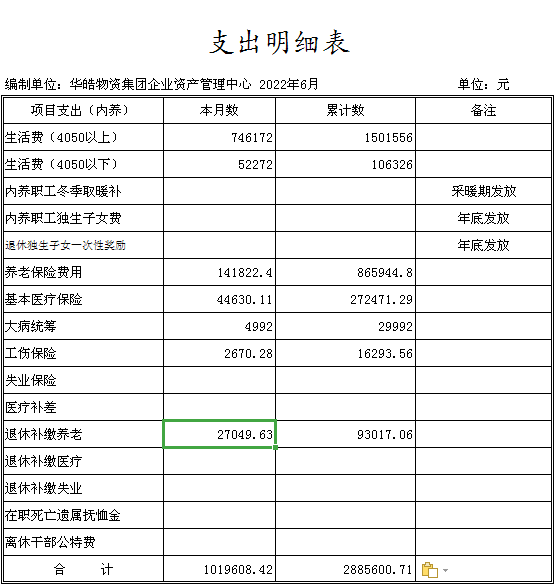 陽泉市物資集團公司企業(yè)資產(chǎn)管理中心成立于2014年11月,是物資集團公司原化輕總公司等七家歇業(yè)關(guān)閉企業(yè)的留守機構(gòu),隸屬于陽泉市華皓物資集團有限責任公司。截止6月份底,企業(yè)總?cè)藬?shù)648人,其中在冊職工287人,離退休職工361人。在冊職工按照年齡結(jié)構(gòu)劃分“40、50”以下人員91人,“40、50”以上人員196人。在冊職工生活和社保等費用享受財政補貼。1-6月份發(fā)放內(nèi)養(yǎng)人員生活費160.8萬元,繳納養(yǎng)老保險95.9萬元,繳納醫(yī)療保險31.9萬元,為9名到齡退休人員辦理了退休手續(xù)?,F(xiàn)將上半年財務狀況及支出情況公示如下: